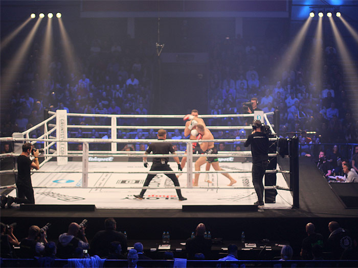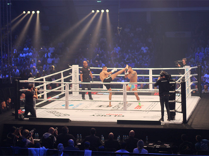Yousri Belgaroui won op spectaculaire wijze (TKO) van Jason Wilnis en vierde dat uitbundig door de huidige kampioen middengewicht Simon Marcus uit te dagen.