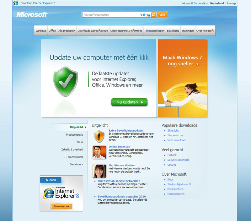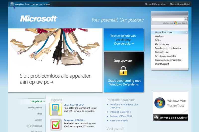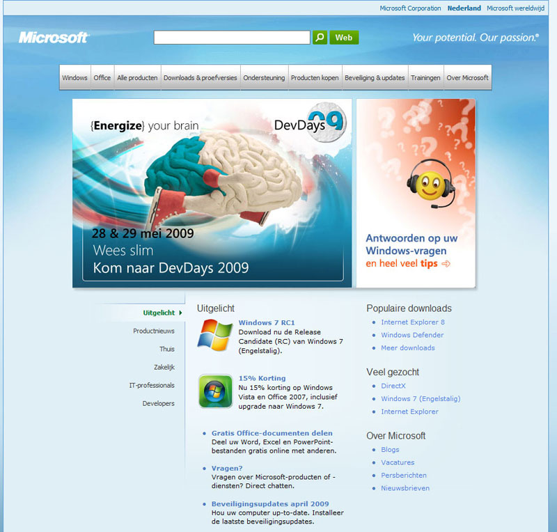 Web designs van de meest bekende websites in Nederland en in de wereld. Op bedrijf gerangschikt