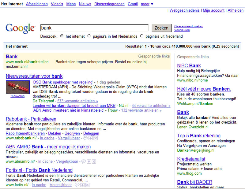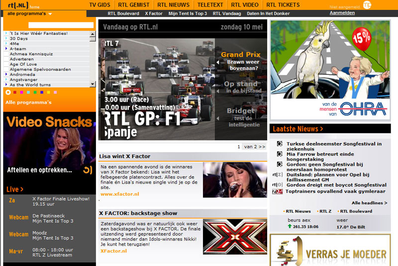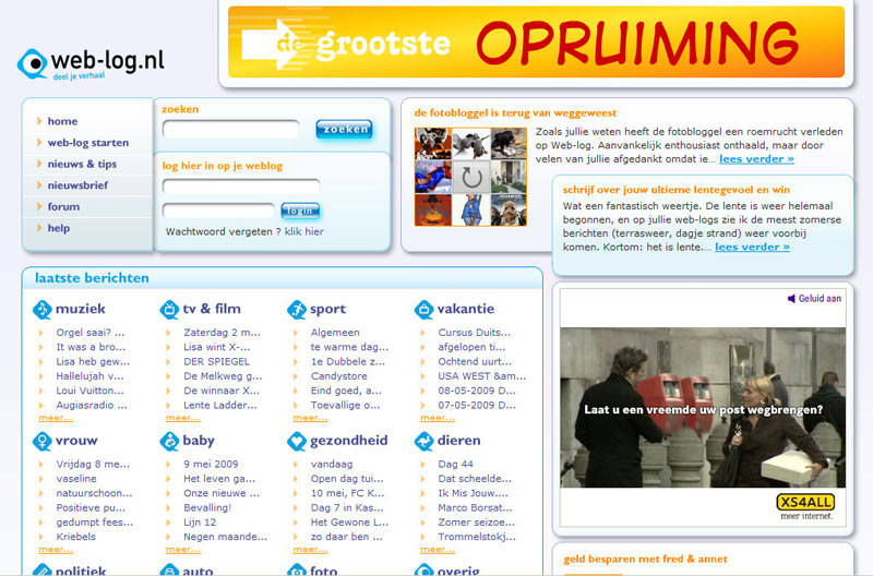 Web designs van de meest bezochte websites in Nederland en in de wereld. Op jaartal gerangschikt vanaf 2001 tot 2009